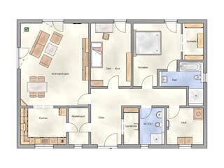 Passen Sie den Grundriss an Ihre persönlichen Bedürfnisse an und besprechen Sie Ihren individuellen Plan mit einem Bauberater des Anbieters.