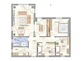 Passen Sie den Grundriss an Ihre persönlichen Bedürfnisse an und besprechen Sie Ihren individuellen Plan mit einem Bauberater des Anbieters.