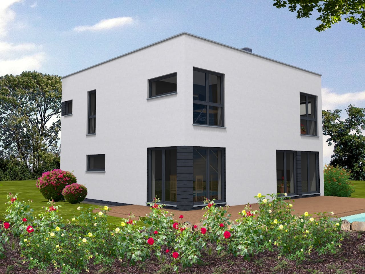 Der Preis für das schlüsselfertige Bauhaus 161 liegt bei etwa 2.900 Euro pro Quadratmeter. Damit ordnet sich dieses Modell im mittelpreisigen Segment ein. Im Preis sind bereits die Bodenplatte sowie die Mehrwertsteuer enthalten. Da Suckfüll jedoch individuelle Planungen anbietet, erstellen wir Ihnen gerne ein konkretes Angebot, das genau auf Ihre persönlichen Ausstattungswünsche zugeschnitten ist.