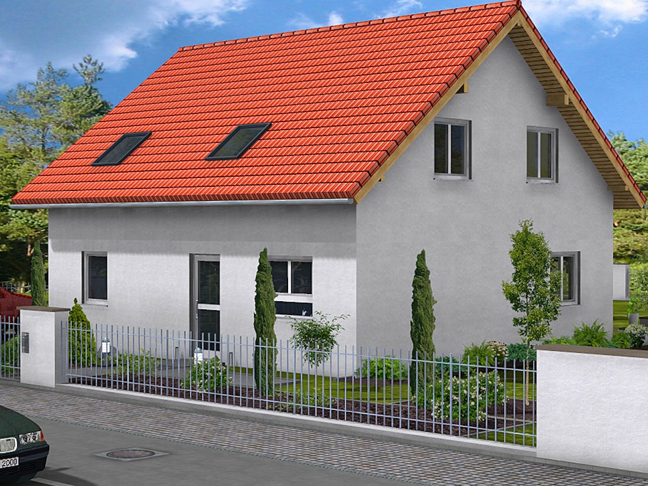 Für dieses Einfamilienhaus empfehlen wir eine Grundstücksgröße von etwa 450 m². Bei einer Grundfläche von rund 96 m² bietet das Haus viel Wohnraum auf kompakter Fläche. Wir raten dazu, circa 50 m² für Stellplätze und etwa 290 m² als Gartenfläche einzuplanen. So stellen Sie sicher, dass alle Abstandsflächen eingehalten werden.
