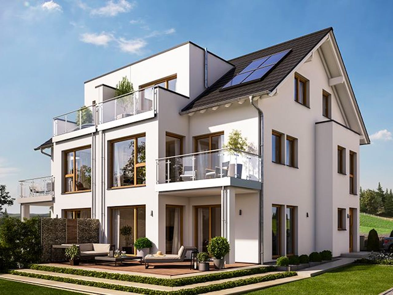 Der Preis bezieht sich auf die Ausbaustufe ZAF als Effizienzhaus 55 inkl. Bodenplatte gemäß aktuell gültiger Bau- und Leistungsbeschreibung. Grundrisse und Abbildungen können Extras zeigen. Flächenangaben nach DIN 277.