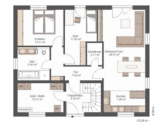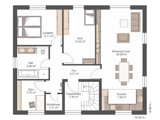 Passen Sie den Grundriss an Ihre persönlichen Bedürfnisse an und besprechen Sie Ihren individuellen Plan mit einem Bauberater des Anbieters.