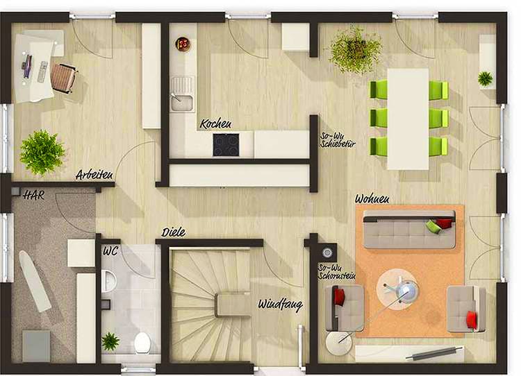 Passen Sie den Grundriss an Ihre persönlichen Bedürfnisse an und besprechen Sie Ihren individuellen Plan mit einem Bauberater des Anbieters.