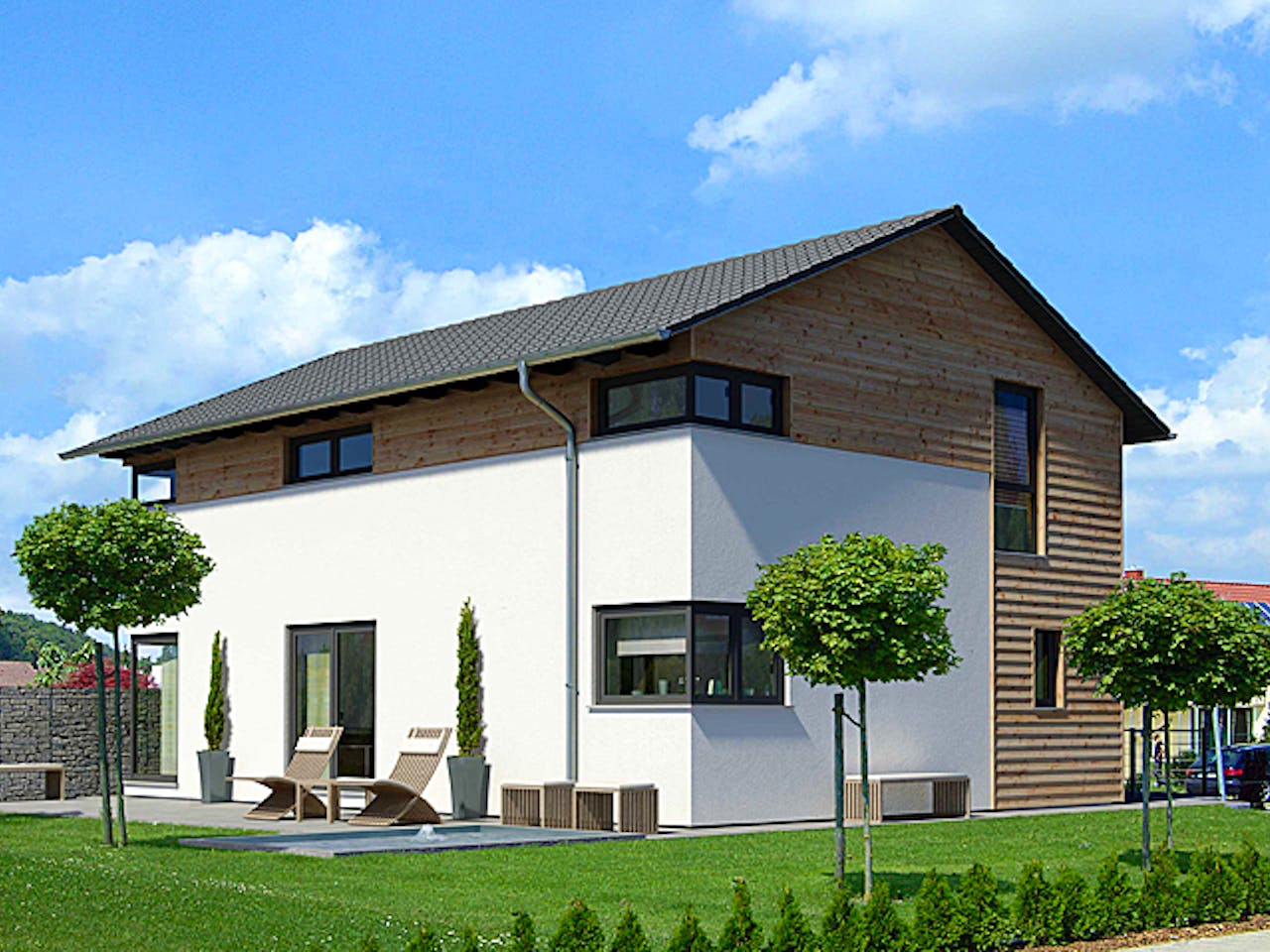Dieses individuelle, designorientierte Edition Holz 92 ist nach ökologischen Gesichtspunkten gebaut. Der nachwachsende Baustoff Holz bietet hier die idealen Voraussetzungen für umweltgerechtes Bauen.