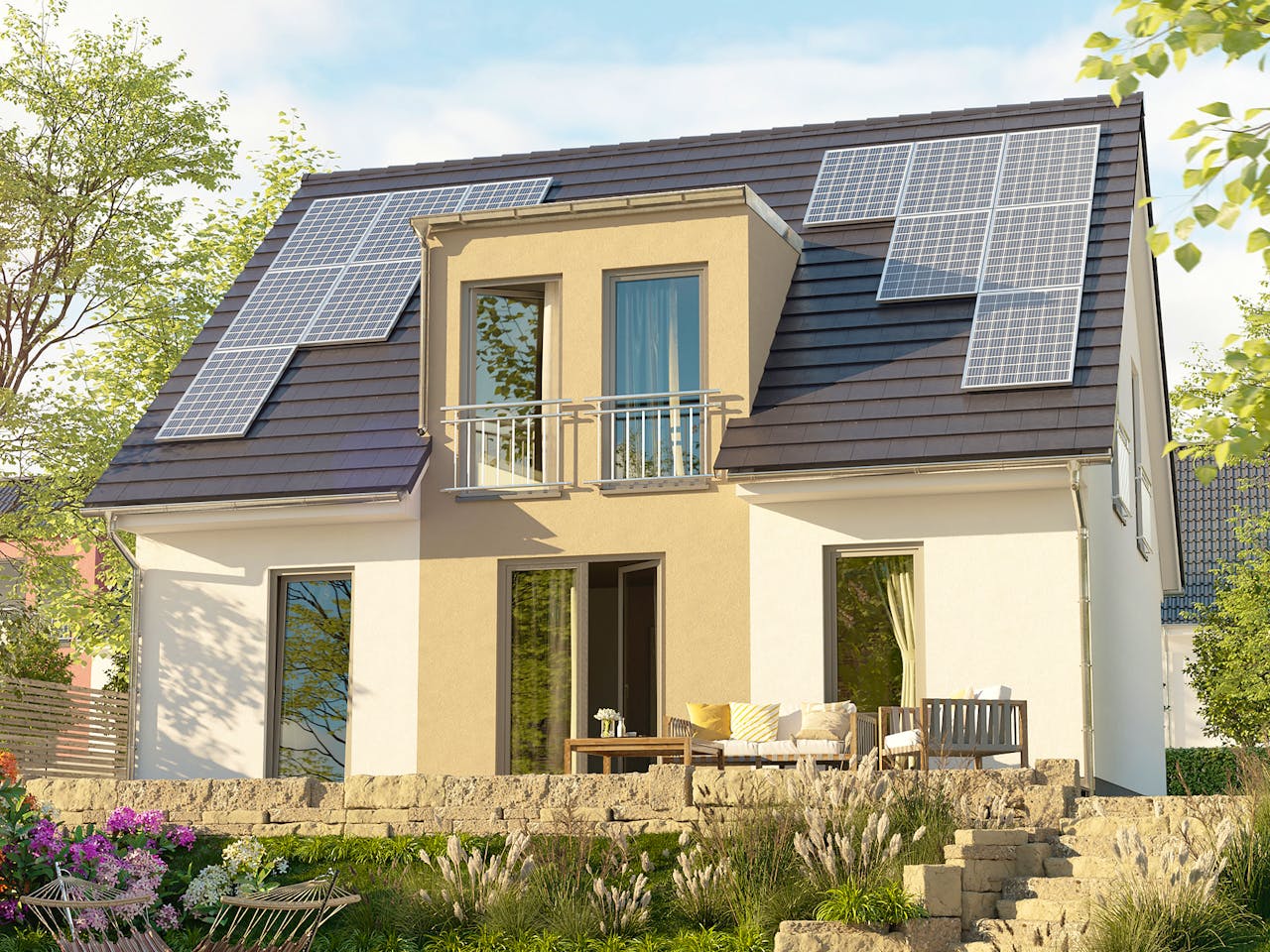 Das Flair 125 wird in massiver Bauweise Stein auf Stein errichtet. In der Ausbaustufe „schlüsselfertig“ sind bereits wertvolle Leistungen wie das Baugrundgutachten, die Erdarbeiten und die Bodenplatte im Festpreis enthalten. Ein umfassender Hausbau-Schutzbrief sichert Sie zudem während der gesamten Bauphase ab. Wir begleiten Sie so sicher auf dem Weg ins Eigenheim.