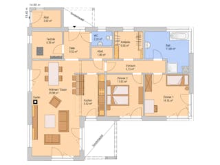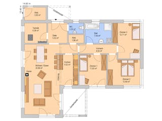 Passen Sie den Grundriss an Ihre persönlichen Bedürfnisse an und besprechen Sie Ihren individuellen Plan mit einem Bauberater des Anbieters.