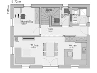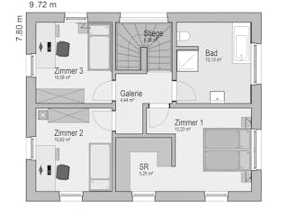Passen Sie den Grundriss an Ihre persönlichen Bedürfnisse an und besprechen Sie Ihren individuellen Plan mit einem Bauberater des Anbieters.
