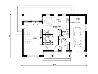 Passen Sie den Grundriss an Ihre persönlichen Bedürfnisse an und besprechen Sie Ihren individuellen Plan mit einem Bauberater des Anbieters.
