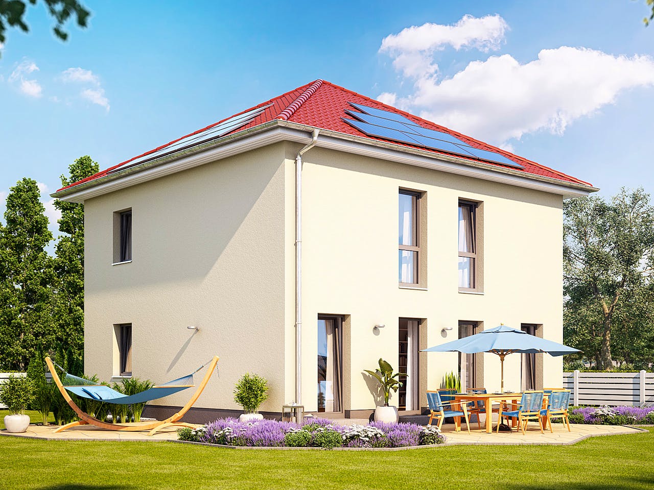 Heinz von Heiden realisiert die Arcus 13K in massiver Bauweise. Das Haus ist besonders nachhaltig konzipiert und erfüllt alle Anforderungen an ein klimafreundliches Heim. Zur Ausstattung gehören eine moderne Wärmepumpe, eine Lüftungsanlage mit Wärmerückgewinnung sowie eine Photovoltaikanlage inklusive Speicher. Wir halten dieses Technikpaket für äußerst zukunftssicher, da es eine hohe Energieeffizienz gewährleistet und Sie unabhängiger von steigenden Stromkosten macht.