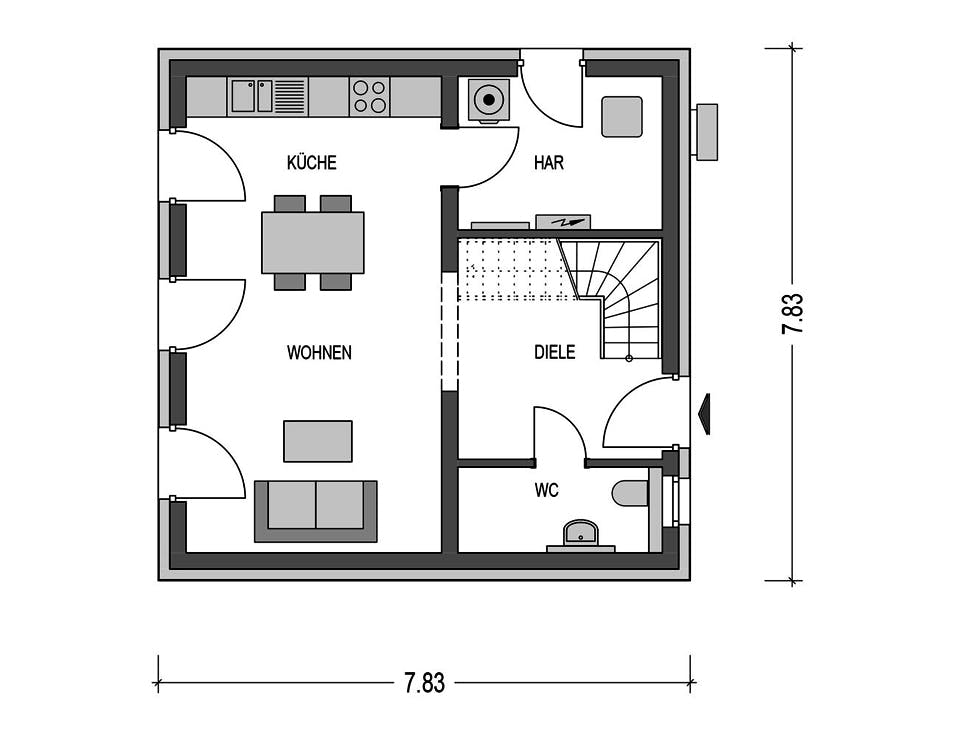 Passen Sie den Grundriss an Ihre persönlichen Bedürfnisse an und besprechen Sie Ihren individuellen Plan mit einem Bauberater des Anbieters.