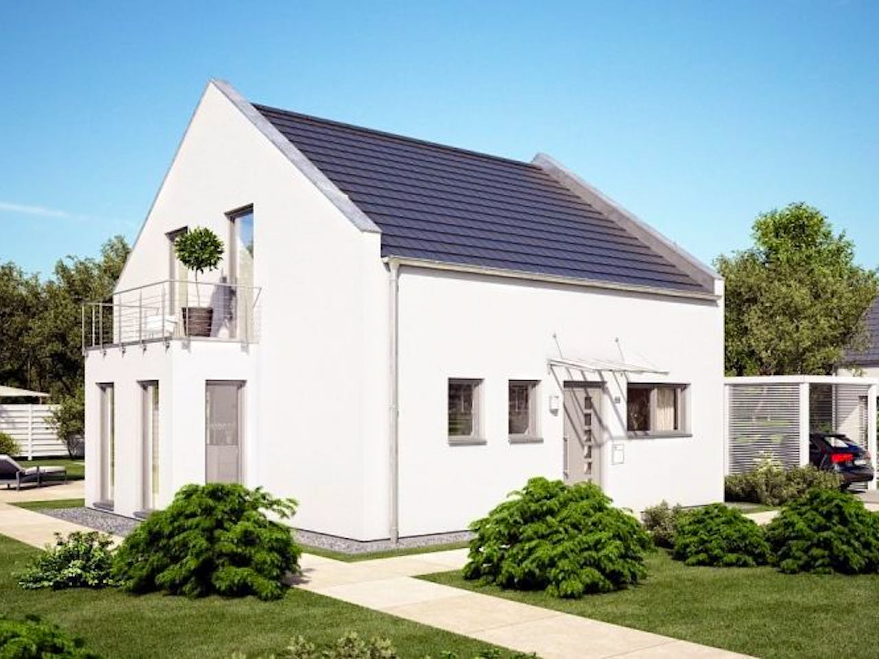 Das Massivhaus 'Komfort Trendline' ist das ideale Familienhaus mit perfekter Raumaufteilung. Im Trendline-Konzept wird das klassische Satteldach-Haus modern interpretiert.