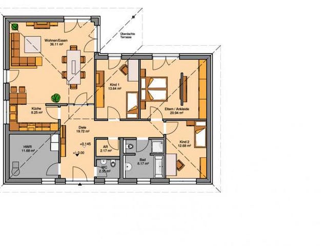 Passen Sie den Grundriss an Ihre persönlichen Bedürfnisse an und besprechen Sie Ihren individuellen Plan mit einem Bauberater des Anbieters.