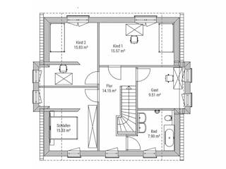 Passen Sie den Grundriss an Ihre persönlichen Bedürfnisse an und besprechen Sie Ihren individuellen Plan mit einem Bauberater des Anbieters.
