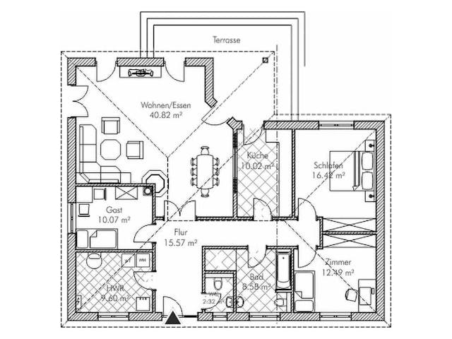 Grundriss Bungalow mit Einliegerwohnung und Garage